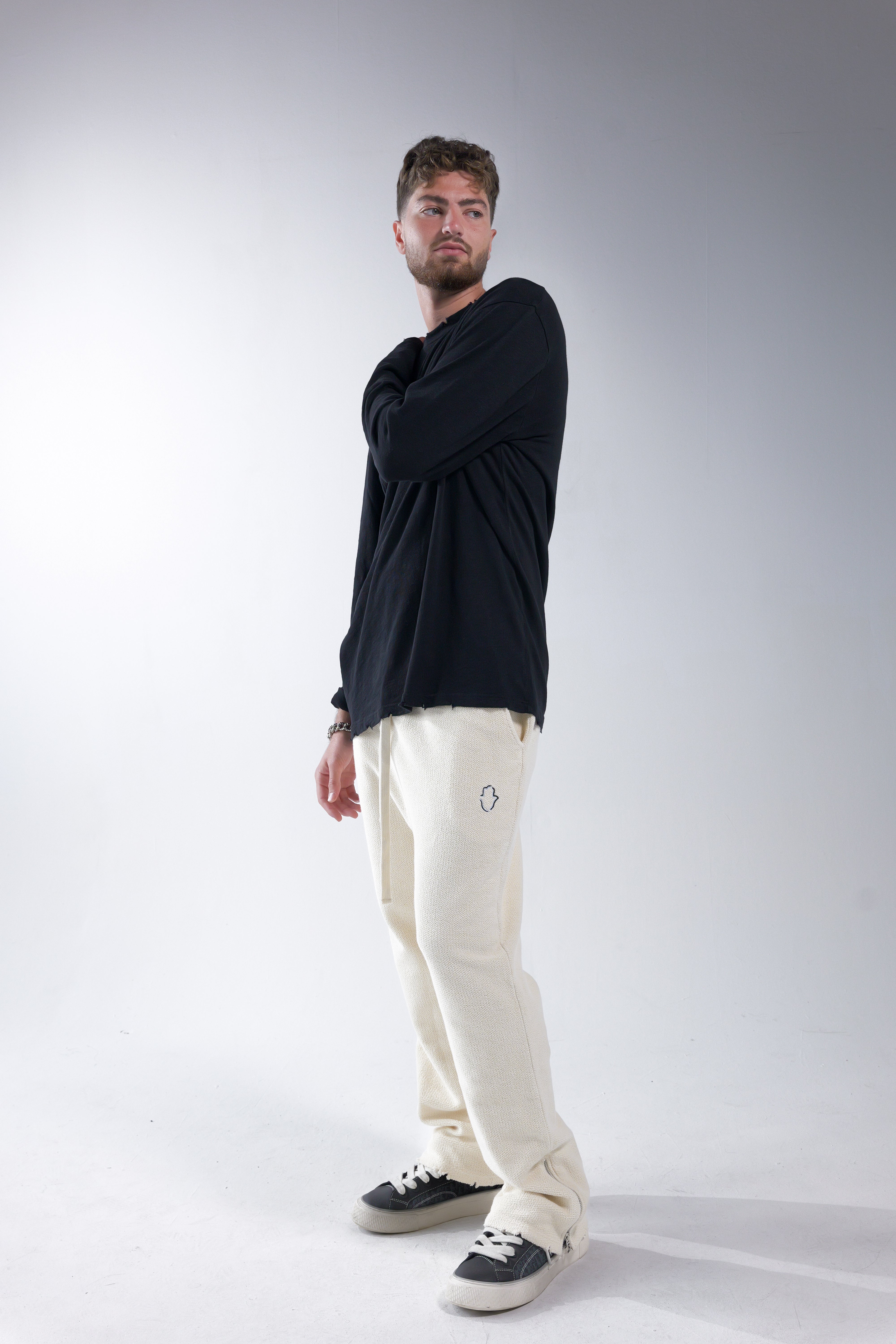 T-shirt à manches longues en coton 100 %, conçu au Portugal avec des finitions soignées à la main.